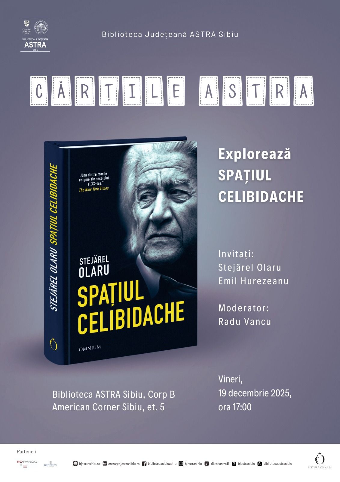 15.12.2025Cartea „Spațiul Celibidache” se lansează la Sibiu, în prezența autorului