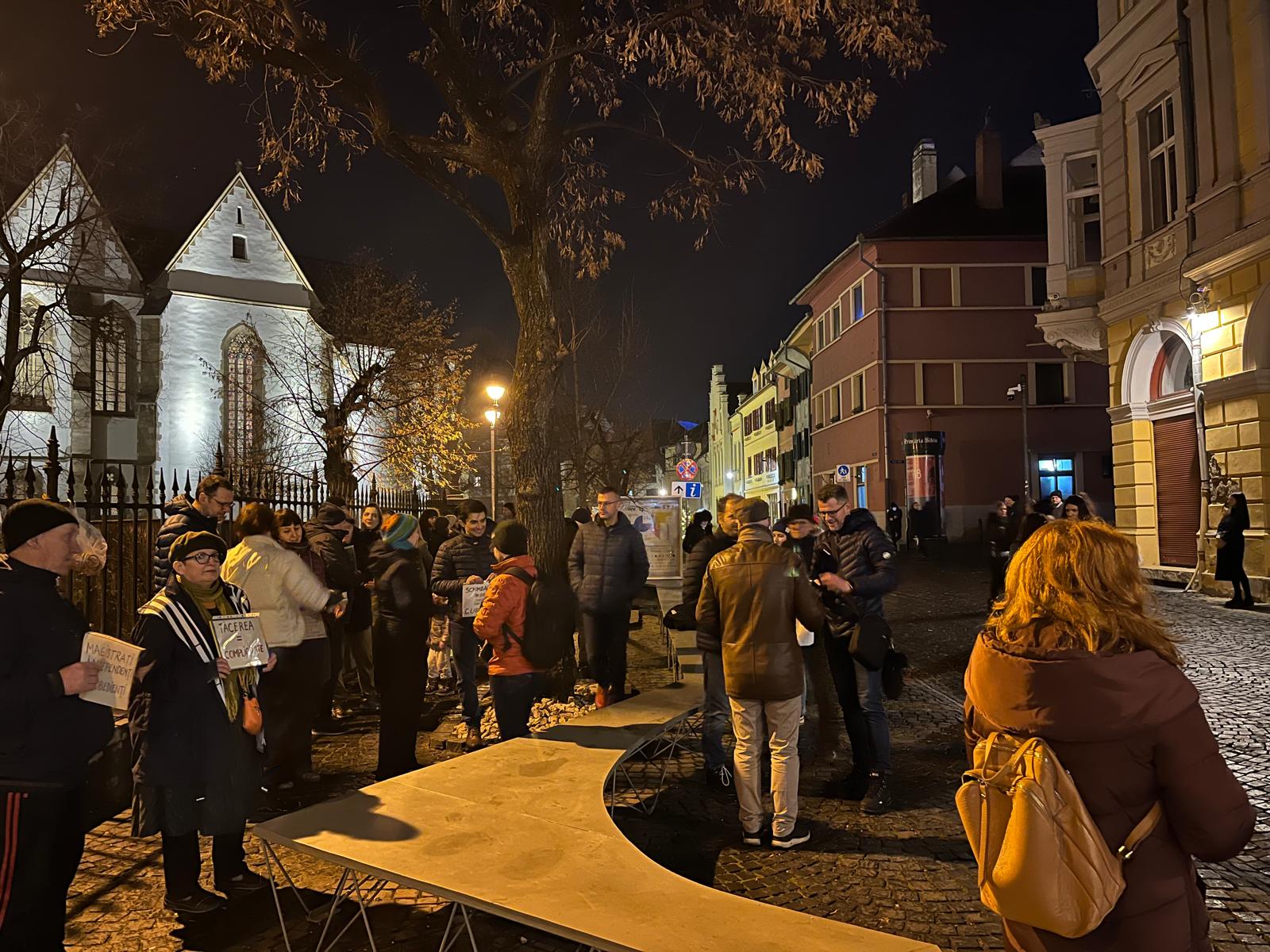 Câteva zeci de persoane s-au alăturat vineri seara protestului inițiat de mișcarea ”Vă vedem din Sibiu” organizat în Piața Huet.